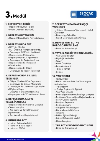 • Depresyonda Psikoegitim • YAB Genel Bilgiler